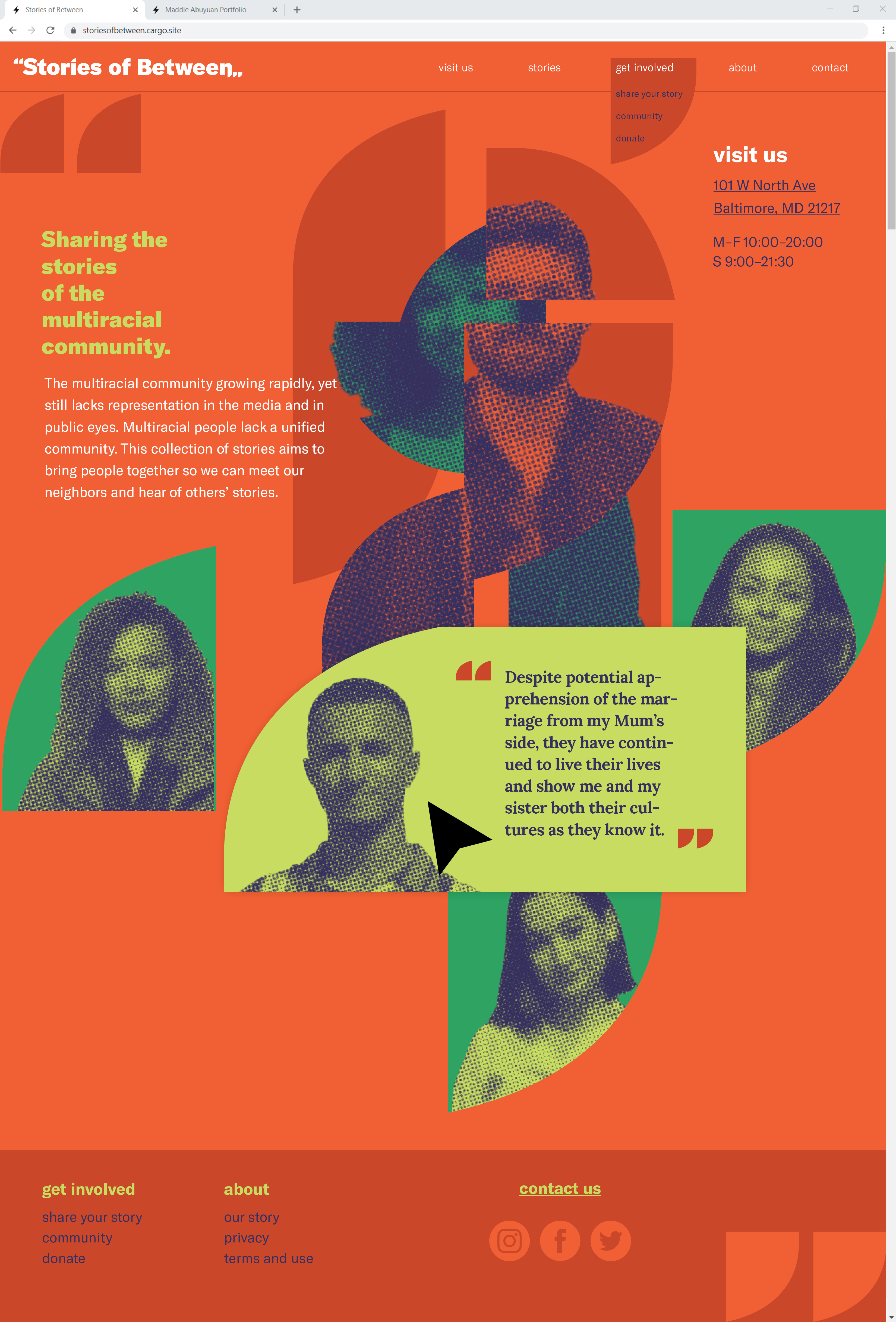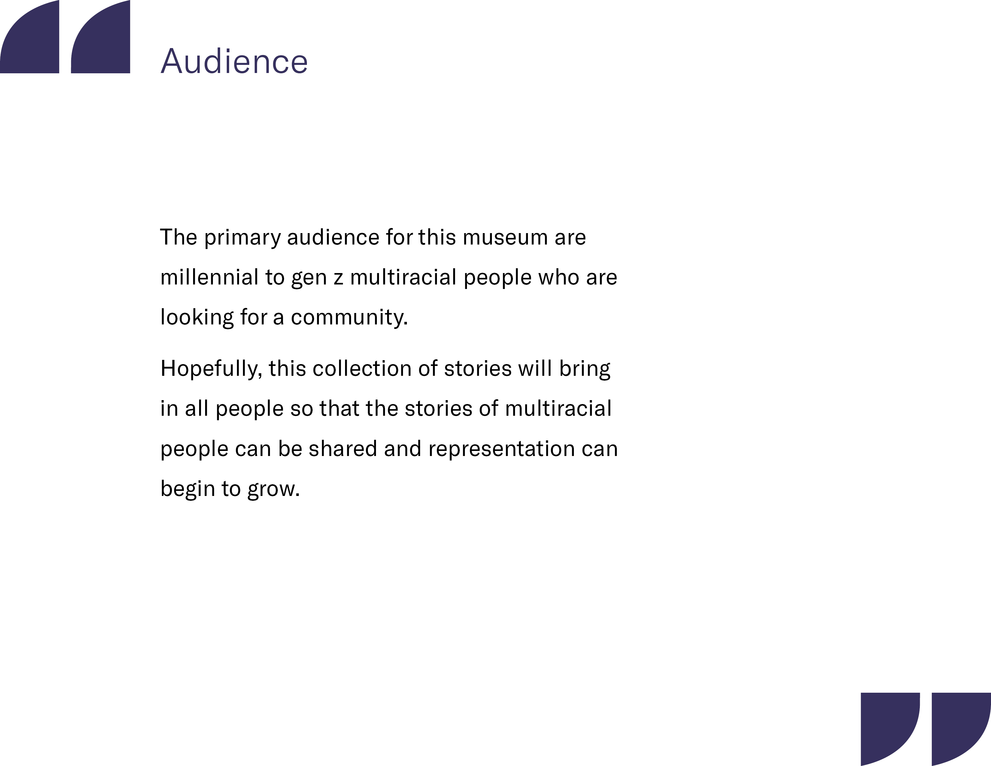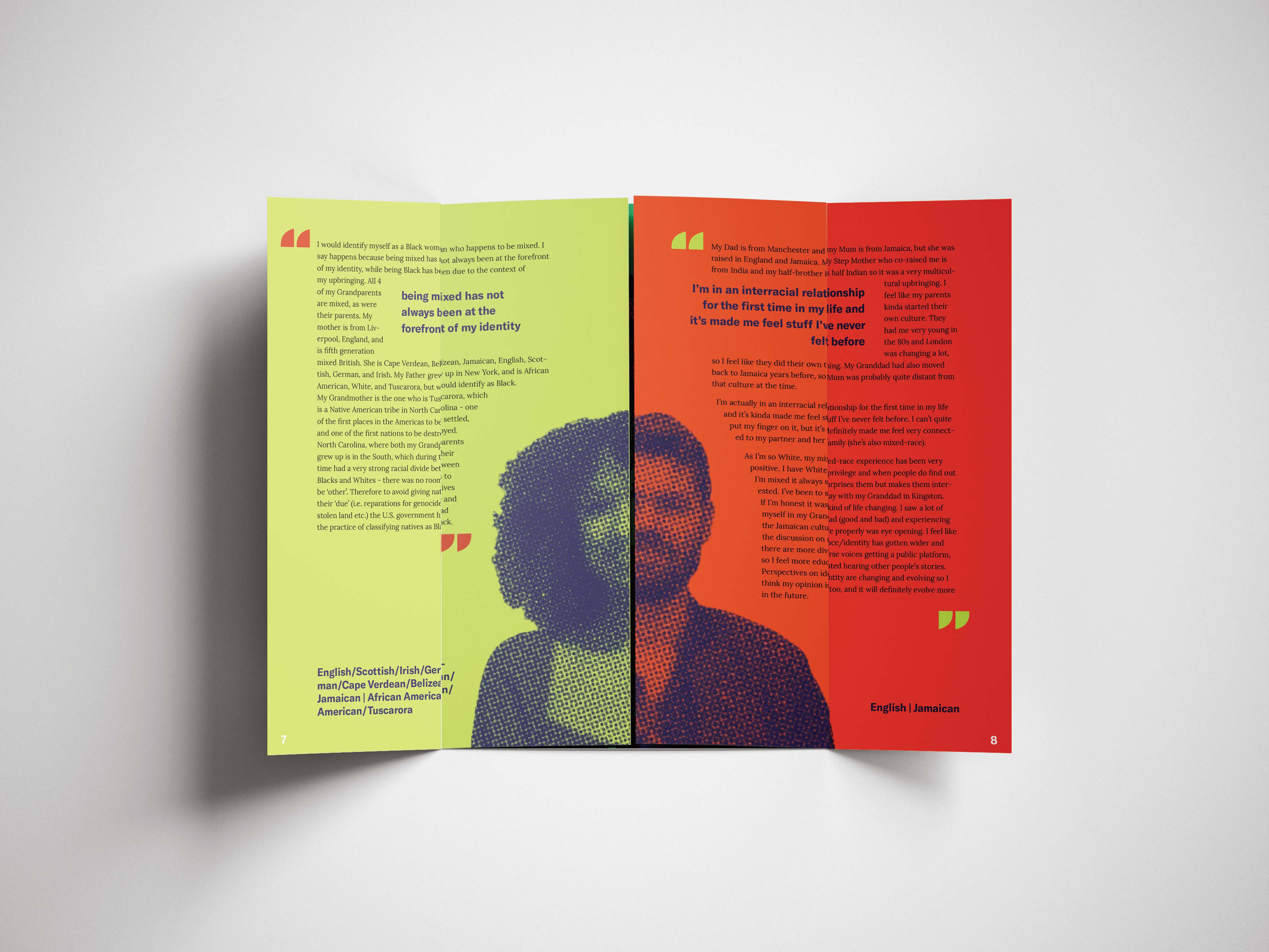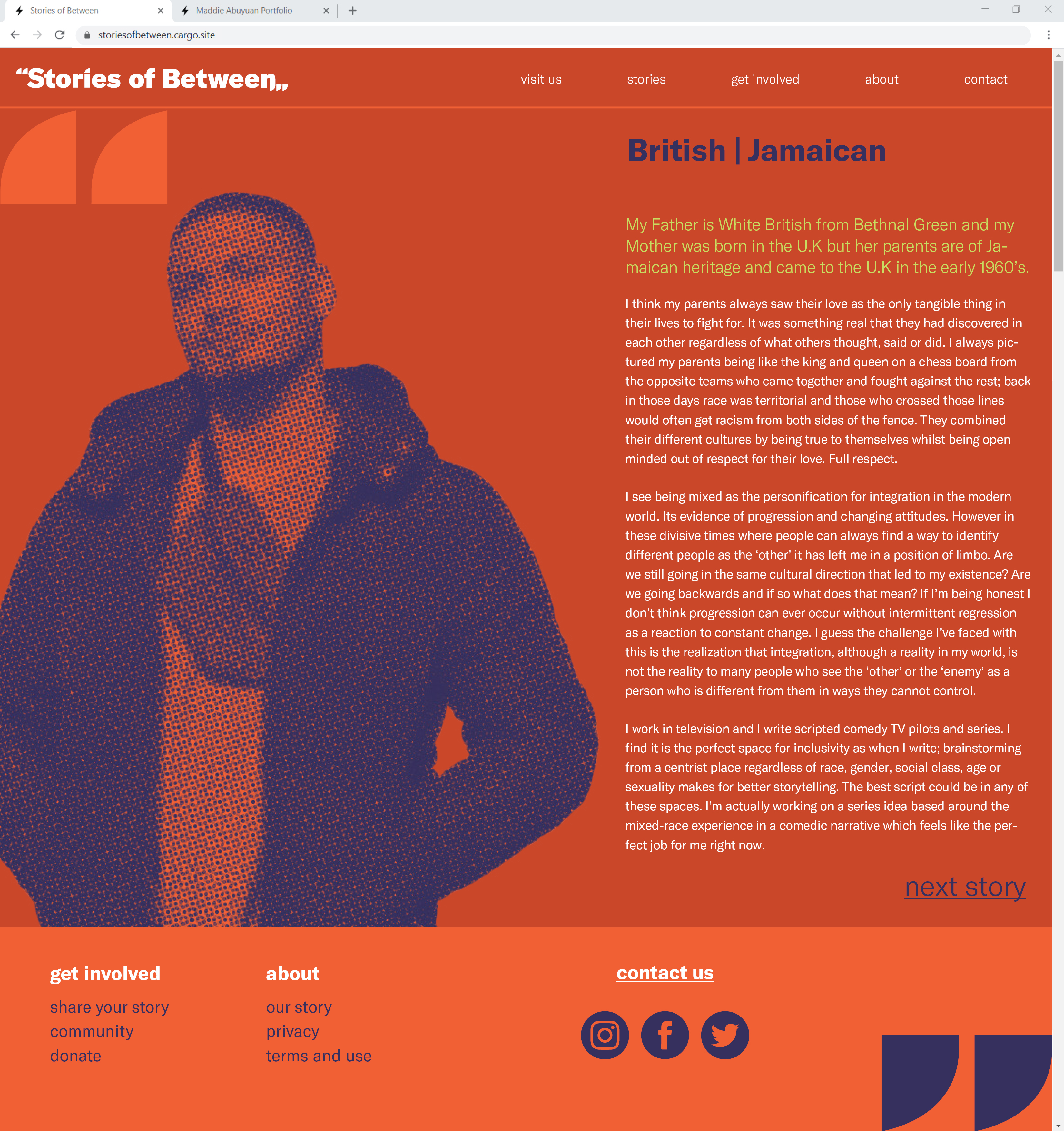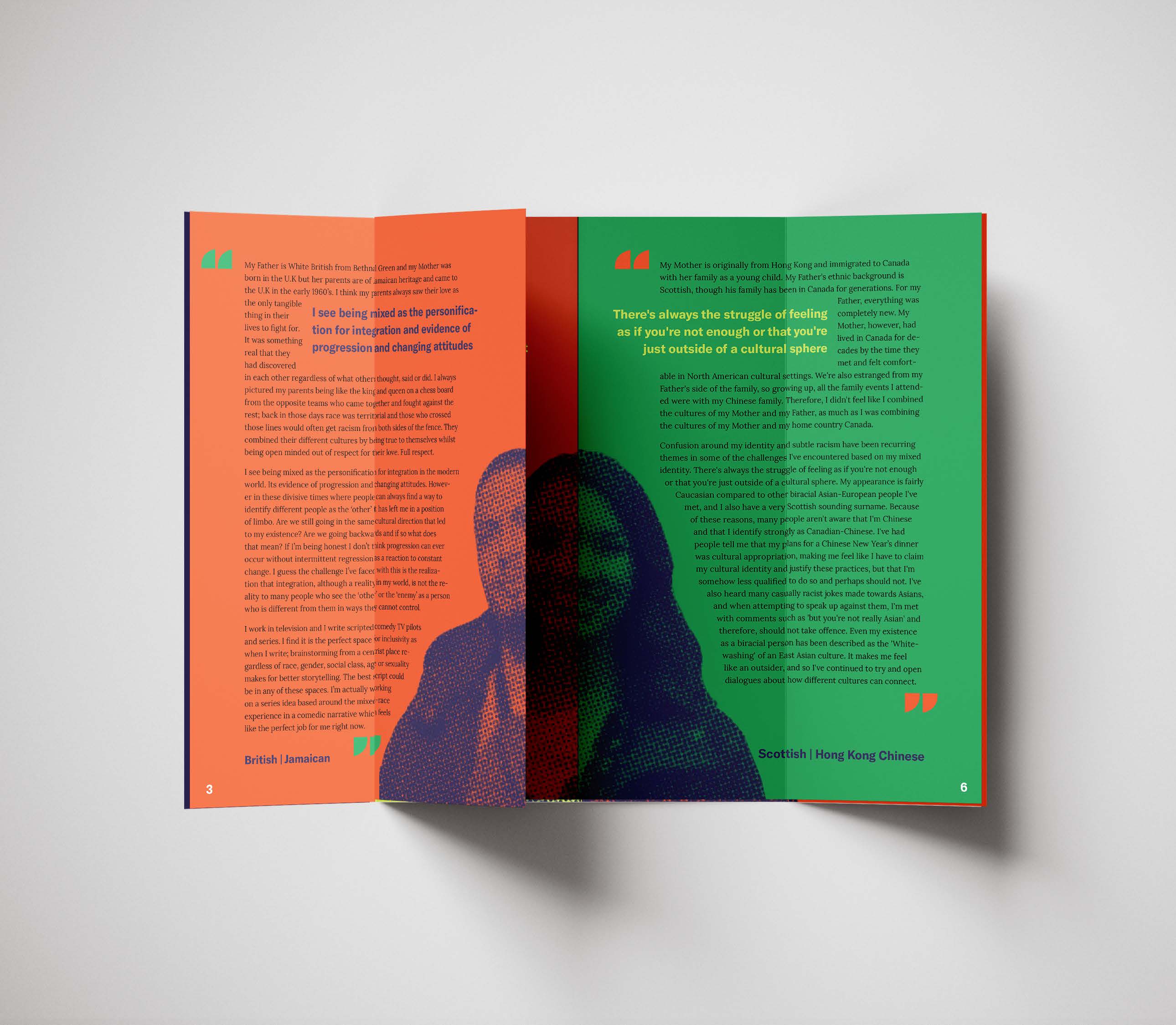 Due to COVID-19, I was unable to gather stories from my peers and take portraits of my own. Without the access to the equiptment and community needed for this project, I had to turn to an outside resource. Without the amazing work of mixedracefaces.com, I would not have been able to create this project. All photography and stories are mixedracefaces.com’s intellectual property. I do not take credit for any of the writing or photography.